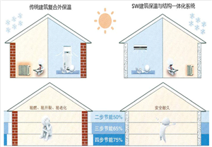 為了達到建筑保溫節(jié)能要求,傳統(tǒng)建筑墻體厚,且需要增加復合外保溫層;而選用ZT建筑保溫與結(jié)構(gòu)一體化系統(tǒng),可在合理的墻厚范圍內(nèi)做到以單一墻體材料滿足建筑保溫節(jié)能要求。