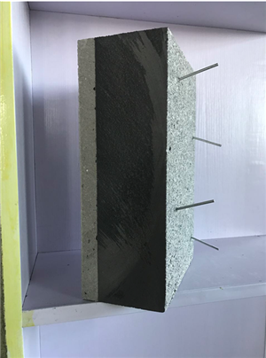 (8)保溫一體板當外膜板使用,施工結束時不拆除,澆筑混凝土時只澆筑鋼絲透出保溫一體板的一面,并通過錨栓或斜插絲捆綁混凝土鋼筋籠上連接使其更加安全可靠,斜插絲接觸不到鋼筋籠的只現澆混凝土不捆扎,還可以每平方將增加2個U型鋼筋穿透保溫板將露出保溫板的鋼筋捆扎在混凝土的鋼筋籠上,進行加強牢固性,具有極佳的可靠性。